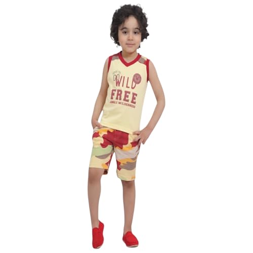 Choice N.C - بيجاما اولادي صيفي قطن طباعة rally تيشيرت كات وشورت ناعم ومريح لبس نوم وخروج للاطفال تصميم عملي وخفيف بألوان جذابة CODE 617