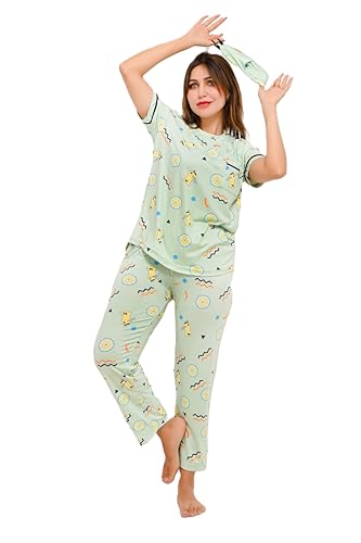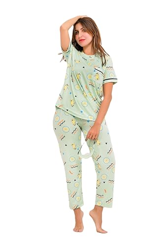 Generic - بيجامة حريمي- تصميم أنيق ومريح بقطعتين تيشريت و بنطلون -مناسب للنوم، الجلوس في المنزل، أو قضاء وقت استرخاء (منقوش, M)