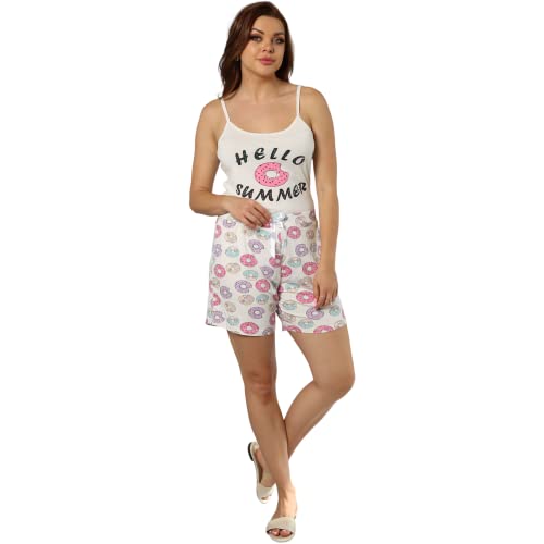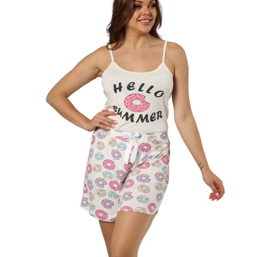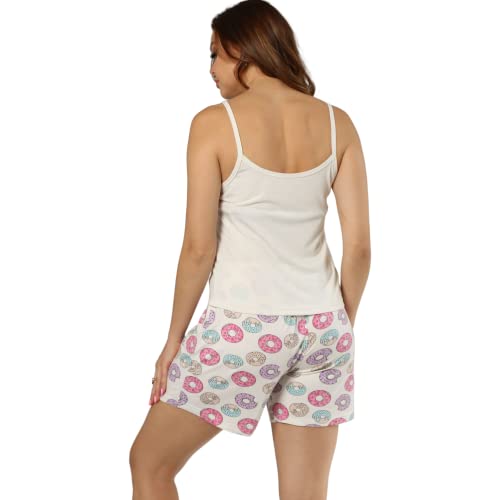 ZECOTEX - Pajamas Set for Women Lounge Sets | Sleeveless Donut Printed 2 Piece Hot Short Set XS-XL | Simple Pajamas for Women | Comfy Summer Cotton Dress Patterned Shorts