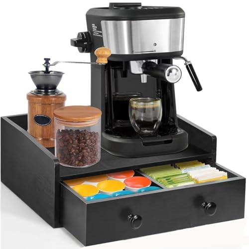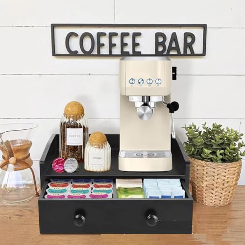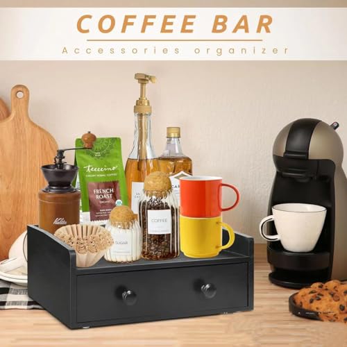 PakyKai - PakyKai Coffee Station Organizer with Drawer,Wooden Coffee Bar Accessories Organizer for Counter,Farmhouse Kcup Coffee Pod Holder Storage Box with Handle for Coffee Bar Decor,Black
