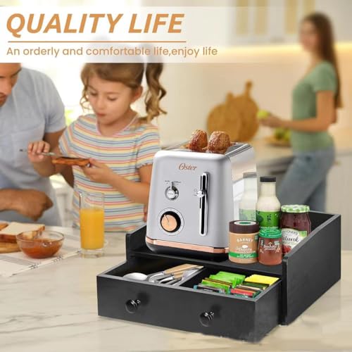 - [Coffee Bar Organizer with Drawer This counter coffee station is good for organizing coffee accessories. Designed with 2 compartments for tea, sugar, sticks, straws and paper cups, the extra drawer can store coffee pods or more.