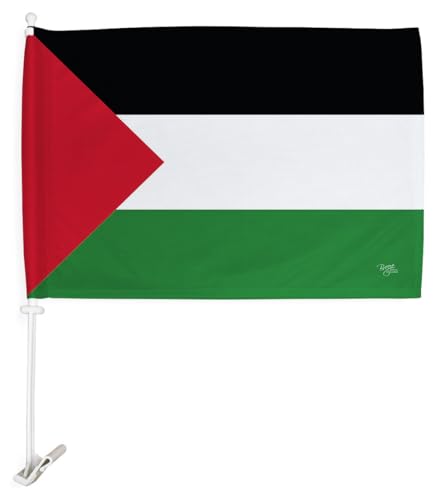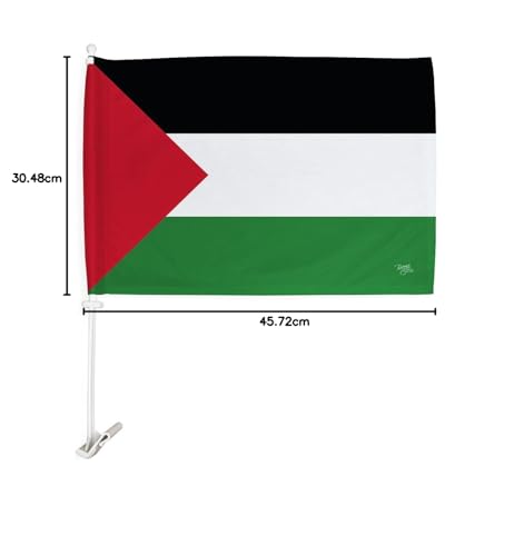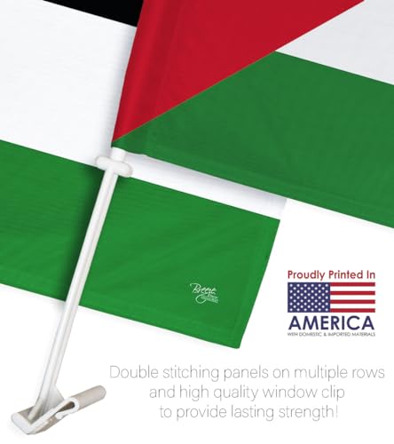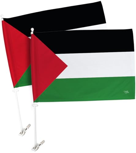 Breeze Decor - Palestine Car Flag 2 PCS Pack Bandera De Palestina Para Carros Auto Small Gifts Palestinian Decor 12" x 18" Mount Bracket Clip Outdoor Accessories Vehicle Decorations Cars Window Made in USA
