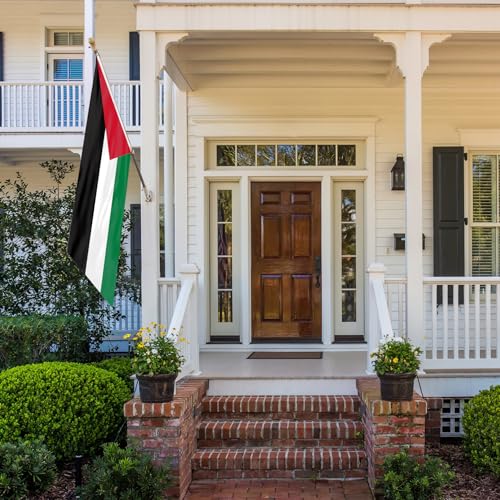 - مقاس كبير 150 × 90 سم/3 × 5 قدم، علم فلسطين هذا يكفي لعرضه بشكل بارز بينما لا يزال مناسبًا بشكل جيد في مساحتك الخارجية.