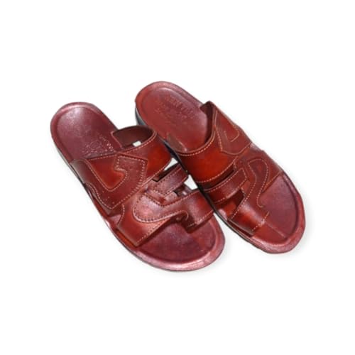 Generic - شبشب رجالي فلسطيني مصنوع من أفخر أنواع الجلد، مقاوم للماء والانزلاق (بني مزركش, 45)