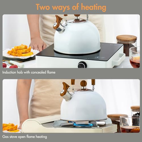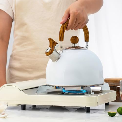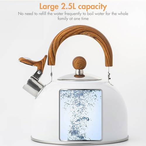 - [Extra large capacity, meet needs]: The whistling kettle for gas hob has a capacity of 2.5 liters and is large in size, so there is no need to add water frequently. Boiling water at one time can satisfy the needs of the whole family.