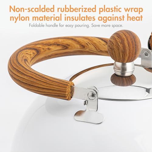 - [Sandblasted lining, anti-scalding design]: The inner tank of the stove top kettle bottom is sanded and the inner tank is sanded to ensure that the whistle kettle is not easy to rust and has no odor. It is made of anti-scalding rubber-plastic-coated nylon material and has a heat-insulating and anti-scalding foldable handle. , easy to pour water and save more space.