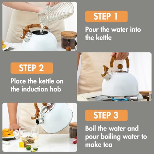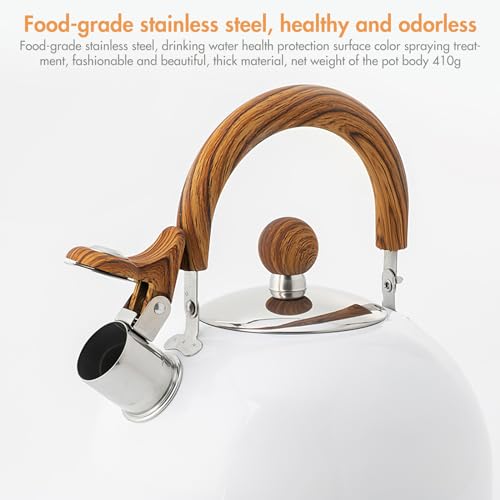 - [Water boiling sound, reducing safety hazards]: When water reaches the boiling point, our tea kettle will make a clear and pleasant sound. Not only does this eliminate the risk of an accident, but it can also sound an alarm to let you know when the water is ready. Dust cap design ensures hygiene and helps retain heat.
