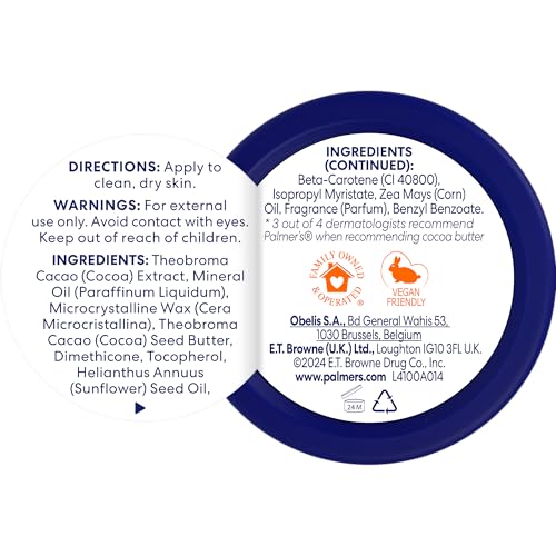 Palmer's - تركيبة زبدة الكاكاو مع فيتامين اي، بلسم الكاكاو متعدد الأغراض، رطوبة لمدة 48 ساعة، 17 جرام من بالمرز