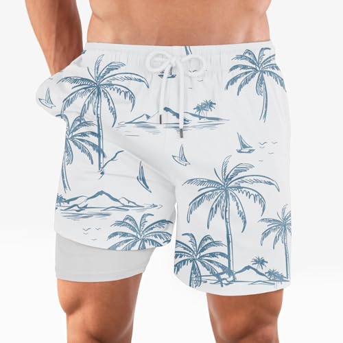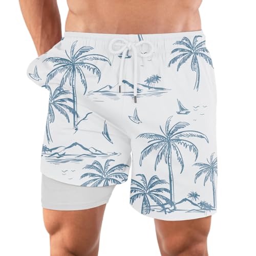 Generic - Palms Printed Polyester Waterproof Swimming Wear, White.