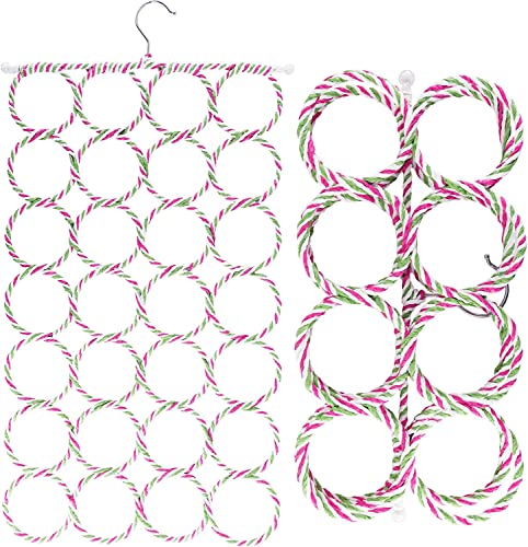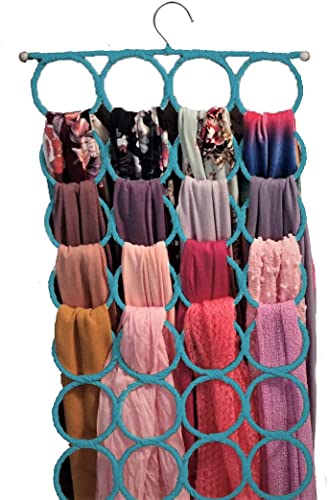 - 【Fashion Color】What you will receive is a 28-ring scarf hanger in a clean and fresh blue, white, and pink combination that blends easily into any wardrobe and keeps your wardrobe looking clean and tidy. Scarf hangers are a practical and convenient housewarming gift for family and friends.