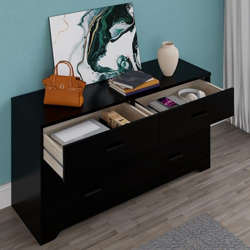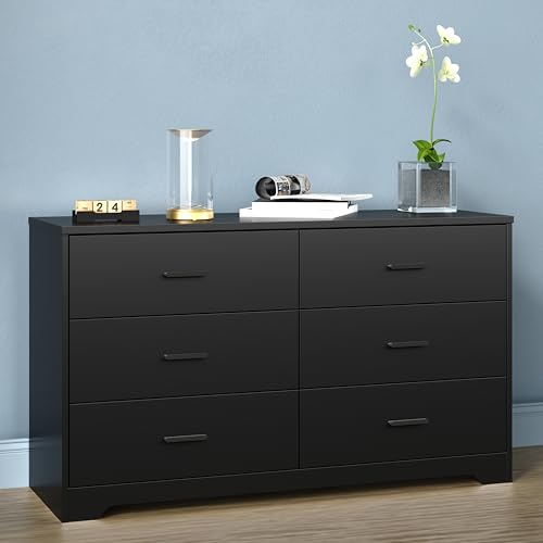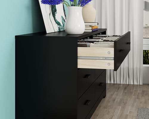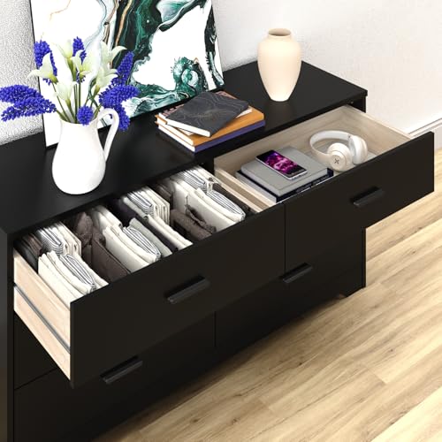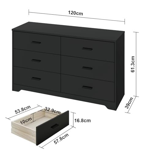 Panana - خزانة أدراج لغرفة النوم مكونة من 6 أدراج بمقابض معدنية من بانانا، خزانة تخزين خشبية لجانب السرير، وحدة تنظيم لغرفة النوم وغرفة المعيشة والرواق وغرفة الأطفال (أسود، 6 طبقات)