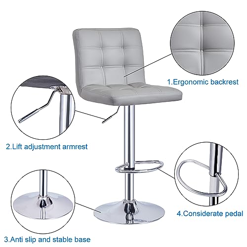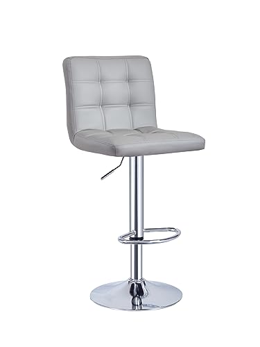 Panana - Panana Bar Stool, High Chair, Adjustable Height, PU Coating, 360° Rotatable with Backrest and Footrest, Chrome Base (Grey)