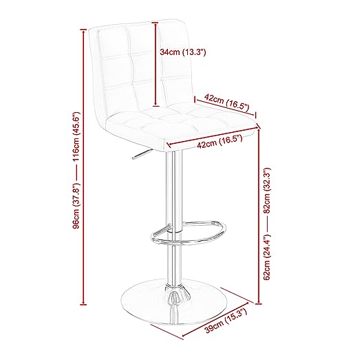 - ✨【Comfort and Stability】 Being made of high-quality faux leather with thick sponge padding, the high-quality quality and innovative design bring you a pleasant sitting experience. Thanks to the high-quality gas spring, the chrome base and the wide base (diameter 39 cm), each stool supports up to 120 kg. They do not oscillate with every movement