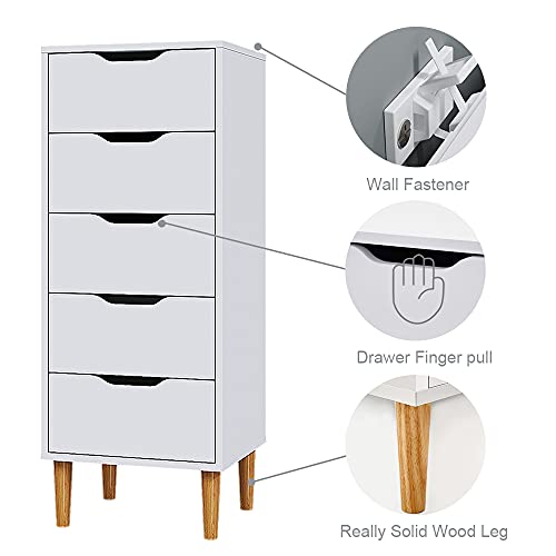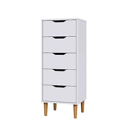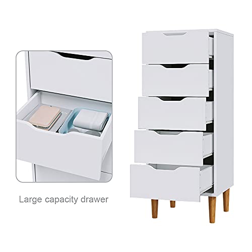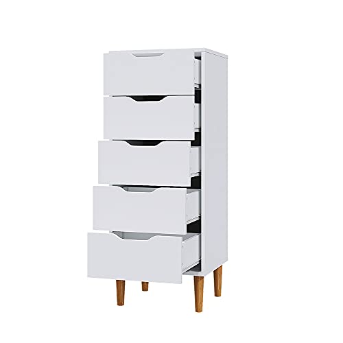 Panana - Panana Modern 4/5 Chest Of Drawers with Metal Runner Wooden Bedroom Storage Cabinet Cupboard Unit For Hallway Living Room Furniture (White, Chest of 5 Drawers)