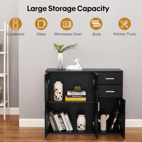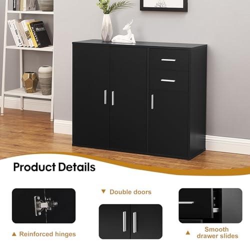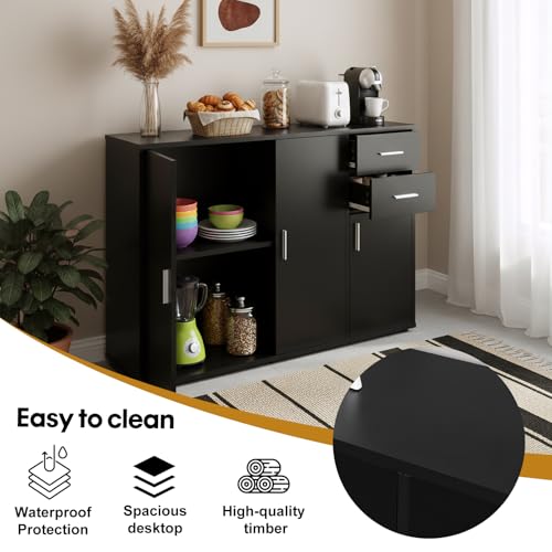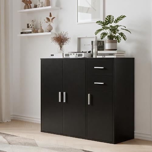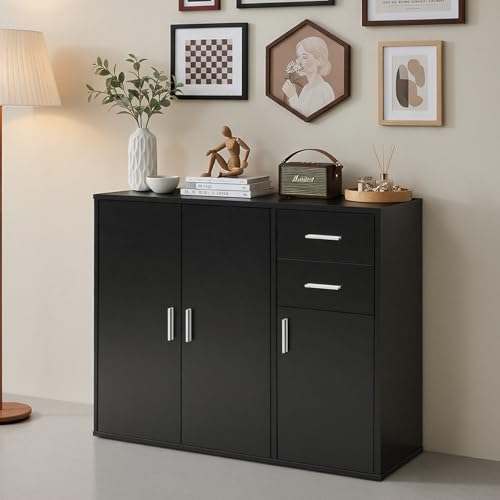 Panana - وحدة جانبية للتخزين مع أبواب وأدراج من بانانا، أثاث لغرفة المعيشة وغرفة النوم - لون أسود، خشب
