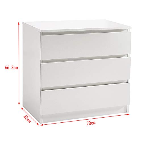 Panana - وحدة أدراج خشبية بتصميم حديث 3/4/5/6 للتخزين لجانب السرير وغرفة النوم وغرفة المعيشة والممر (أبيض، وحدة بـ3 أدراج)