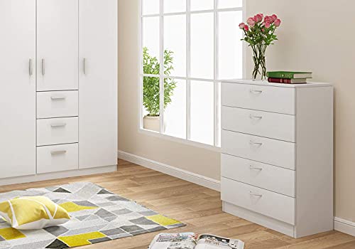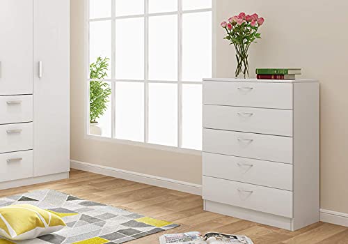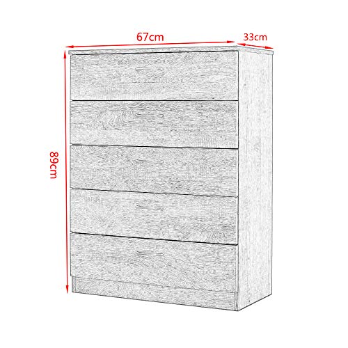 Panana - Panana Wooden Bedside Table with 5 Drawers for Living Room, Bedroom, Office, 67 x 33 x 89 cm (White)