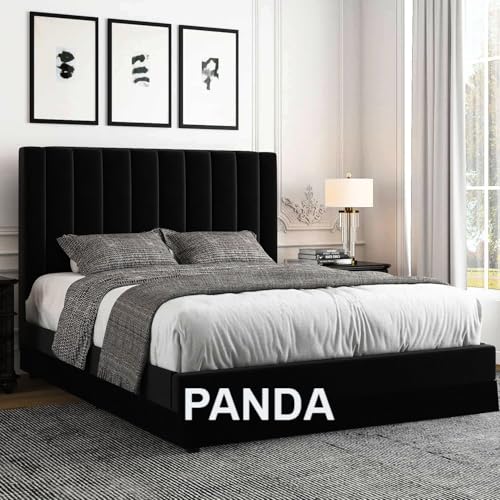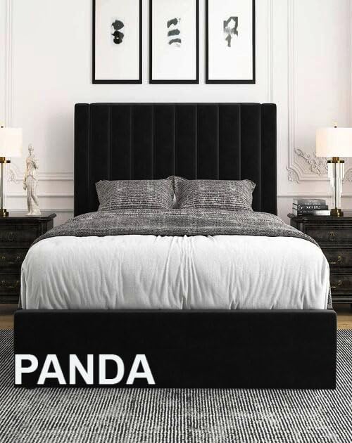 Generic - Panda Bed 120x195 BlackPlush Wood Slats Counter Strong