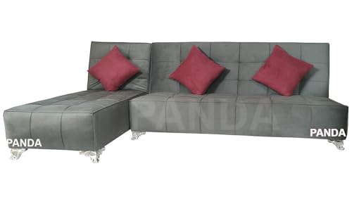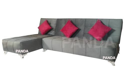Generic - Panda Sofa Bed Velvet Grey 2 Piece Sofa and Chaise Lounge