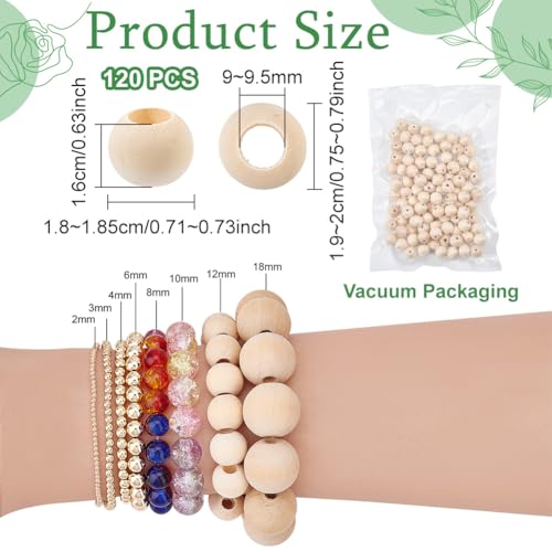 - Large Hole Wooden Beads: these beads are about 19~20mm in diameter, hole is 9~9.5mm in diameter. Quantity: package includes 120pcs wooden beads.