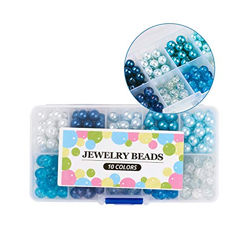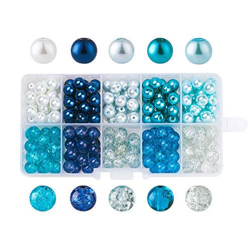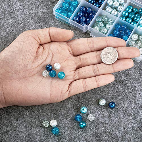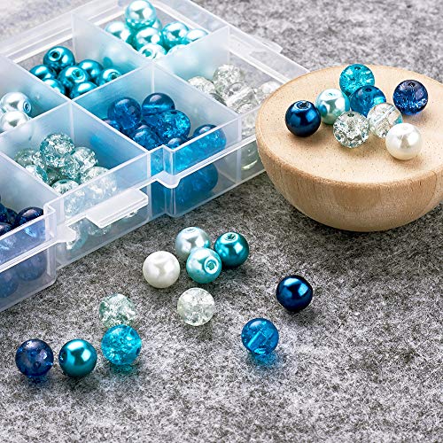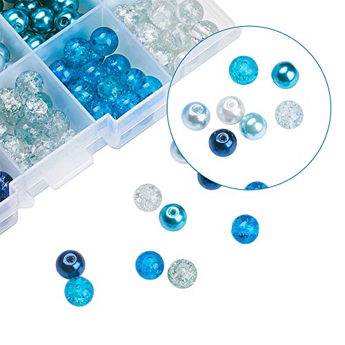 PH PandaHall - Pandahall Blue & White Color Transparent Crackle & Pearl Glass Bead Sets 8~8.5mm Round Loose Spacer Beads About 198~200Pcs/Box