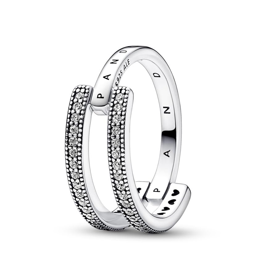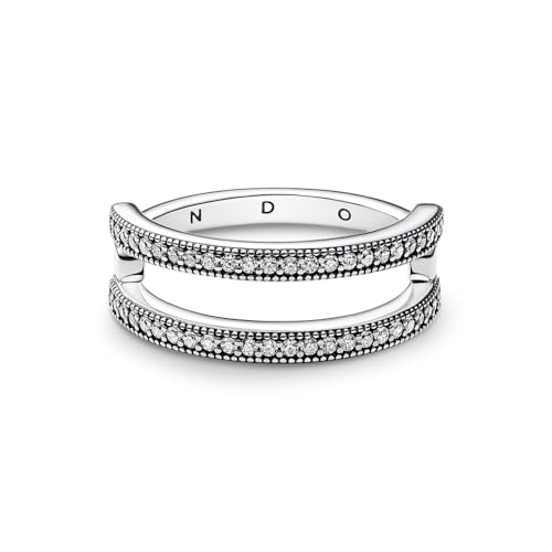 PANDORA - Pandora 192779C01-50 Signature Logo and Pave Double Band Ring for Women, Silver