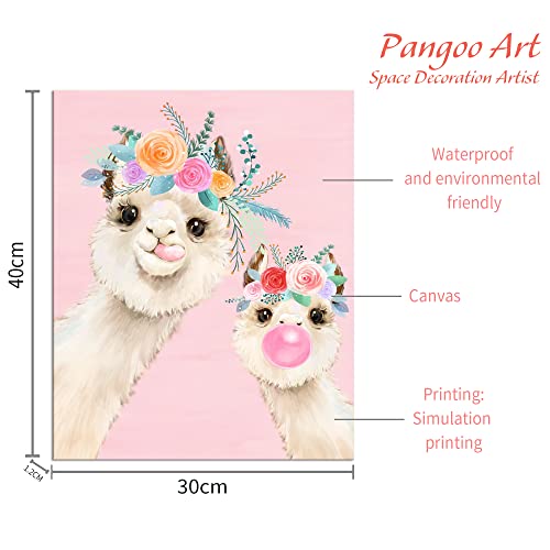 Pangoo Art - Pangoo Art Alpaca & Llama Canvas Wall Art, Cute Animal Posters with Frame, Office, Living Room, Bedroom & Bathroom, 12x16 inch