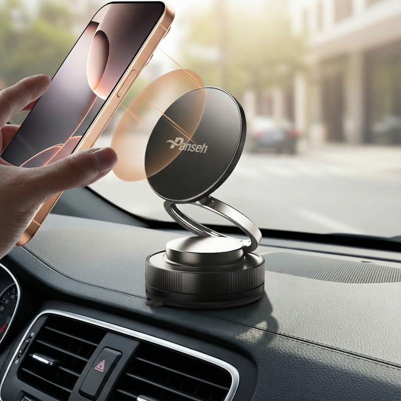 Panseh - Magnetic Car Phone Holder, Zinc Alloy Build - 360° Adjustment, Compatible with 3.5–6.5 Inch Smartphones - PH002 - Black