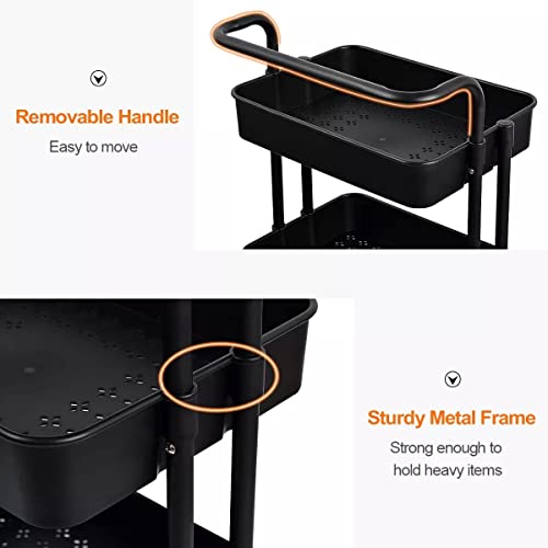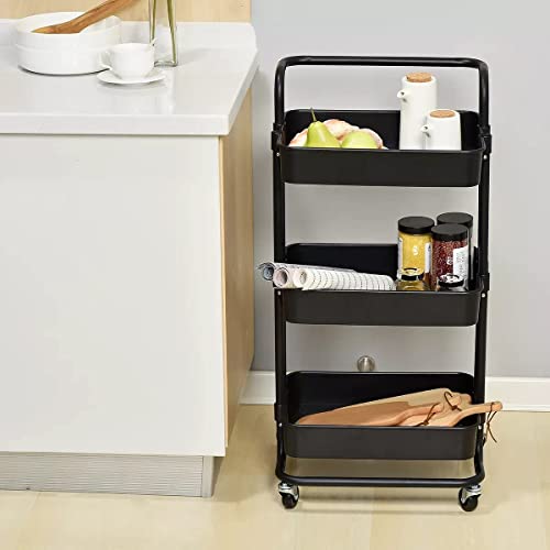PANTH - رف تخزين للمطبخ من 3 طبقات مع عجلات دوارة، عربة معدنية موفرة للمساحة لتنظيم والتخزين المنزلي من بانث (بينك)