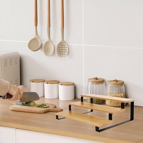 - The tiered design of the shelves ensures that all stored items are visible at a glance, making it effortless to select spices, bottles, or cosmetics while adding elegance with the natural bamboo finish.