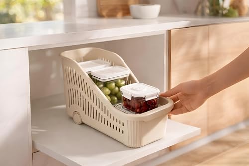 - This roller storage bin is engineered to optimize kitchen space by sliding smoothly under counters or cabinets, allowing easy access to frequently used items like vegetables, fruits, or pantry staples—keeping your countertops clutter-free and your workflow efficient.