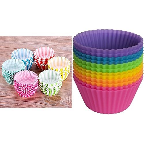 Generic - Paper cup cake, assorted color + Pantry elements silicone baking cups - set of 12 reusable cupcake liners in six vibrant colors