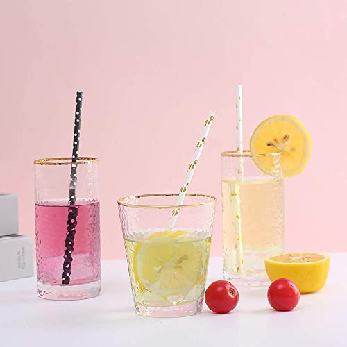 - ★100PCS/PACK: Includes 100 pcs paper straws, 4 patterns, 25 pcs for each design. Perfect for daily drinkings, such as juices, iced coffee and liquid like water and soda at home, & office and etc. But we suggest to don't use it with thicker substance such as shaker or smoothie. As it is paper straw, not a plastic straw.