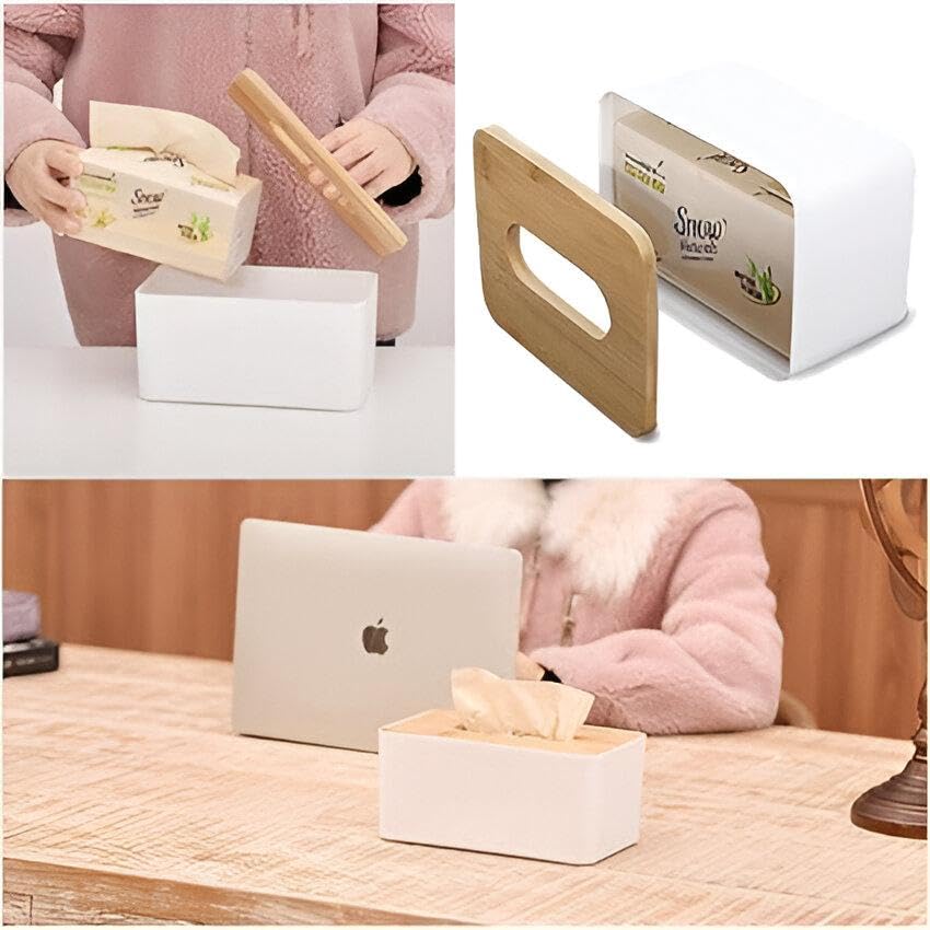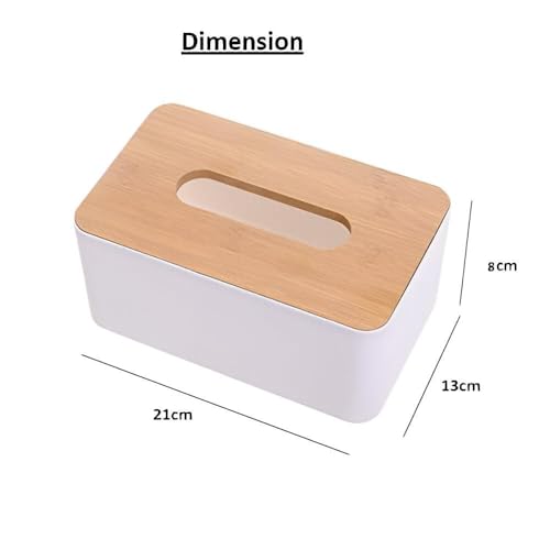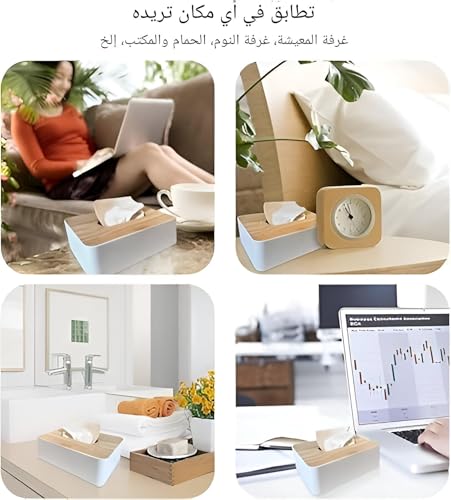 - مع تصميم عصري وبسيط، يأتي حامل علبة المناديل هذا في صندوق أبيض أنيق مع غطاء خشبي بني طبيعي. لا يخدم هذا التصميم غرضه العملي فحسب، بل يعمل أيضًا كقطعة زخرفية، مما يضيف لمسة أنيقة وراقية إلى أي غرفة في منزلك.