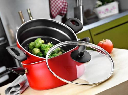 Papilla - قدر طبخ من بابيلا، لون أسود بتشطيب غير ستيك، مقاس 22 سم. يتضمن قدر بخار مع غطاء زجاجي ومقابض مريحة للاستخدام. مناسب لبوتاجاز الغاز، صنع في تركيا