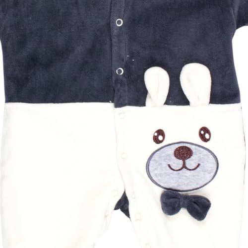 Papillon - Papillon Boys Embroidered Bear Velvet Hooded Long Sleeves Bodysuit Baby & Toddler Sleepers (pack of 1)