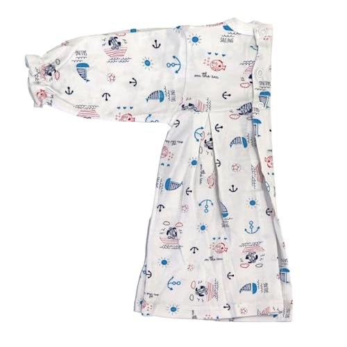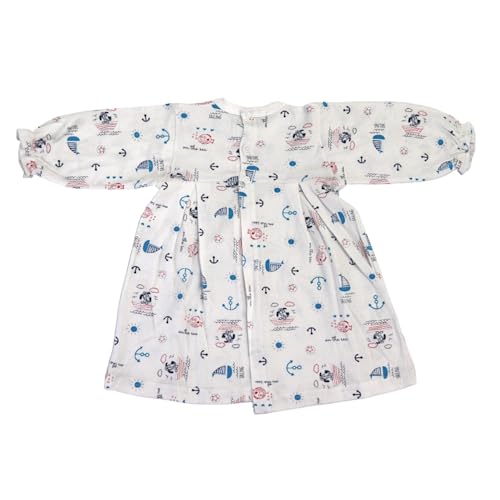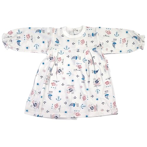 Papillon - Papillon Cotton Long Sleeves Dress Printed Boats For Girls-White-New Born