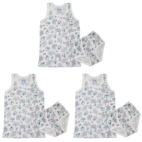 Papillon - بابيلون طقم قطن مكون من فانلة بدون اكمام وملابس داخلية مطبوعة باشكال للاولاد بعمر 4 سنوات من قطعتين - ابيض ورمادي (عبوة من 3 قطع)