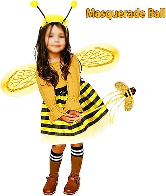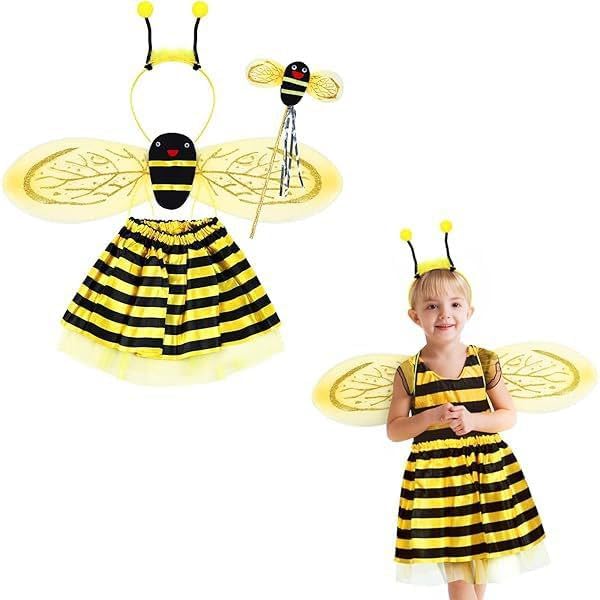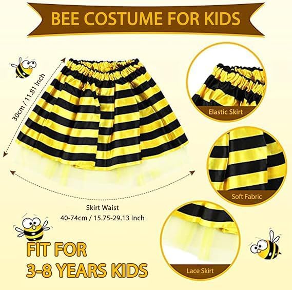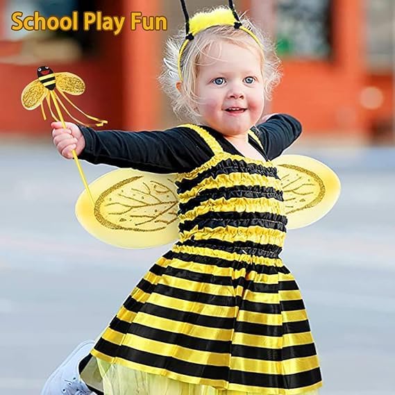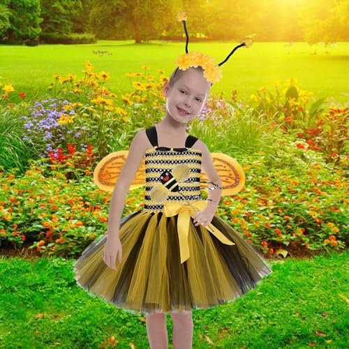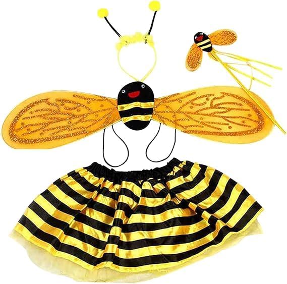 Generic - مجموعة زي تنكري بتصميم نحلة للاولاد والبنات من بابوريتش ، مع جناح وعصا خرافية وتنورة وتاج للحفلات التنكرية في المسرح المدرسي (3 - 8)