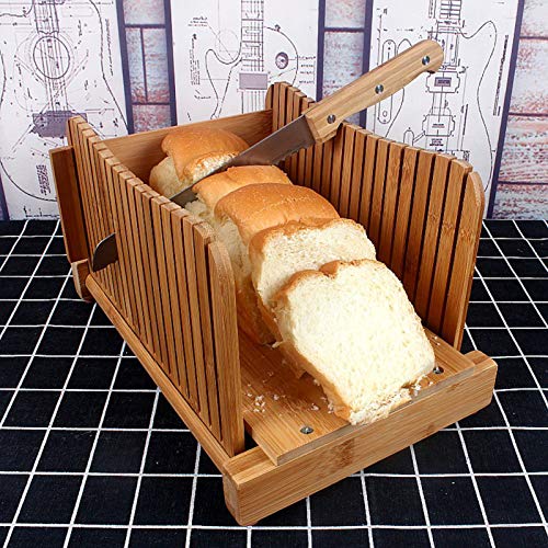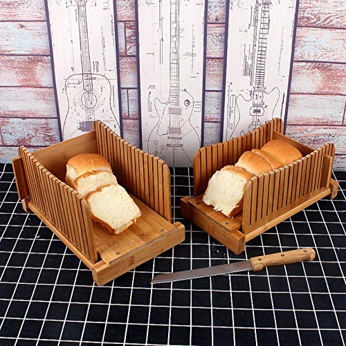 PapupuluS - قطاعة خبز من الخيزران، ألواح تقطيع خبز قابلة للطي وصغيرة الحجم، قطاعة خبز محمص بثلاثة سماكات لتقطيع الخبز والكعك والبيغل المنزلي من بابوبولوس، كبيرة الحجم