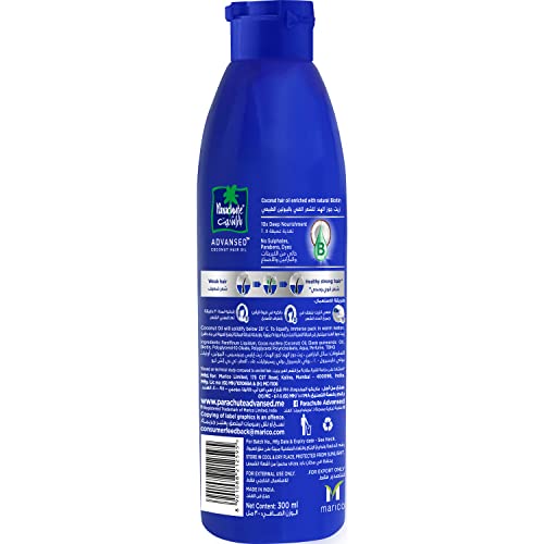 Parachute Advansed - زيت باراشوت أدفانسد بيوتين وجوز الهند لشعر صحي | يقلل من تساقط الشعر ويعزز نموه | خالٍ البارابين والسيليكون والكبريتات - 300 مل