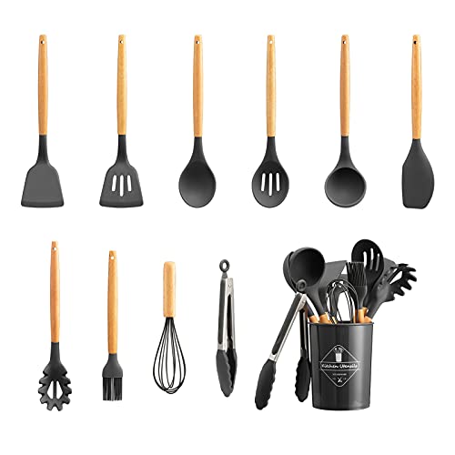 Generic - PARANTA 12PCS Kitchen Utensil Set Silicone Cooking Utensils Kit Spatula Heat Resistant Wooden Spoons Gadgets Tool for Non-Stick Cookware Assorted Colors - Assorted Colors
