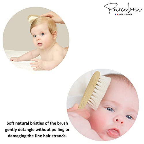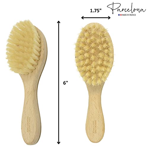 Parcelona - Parcelona French Grooming Wooden 6" Celluloid Soft Natural Silk Bristles Baby Brush for Girls and Toddlers Styling Girls Hair Accessories (Wooden Brown)