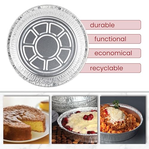 PARTY BARGAINS - PARTY BARGAINS 7 Inch Round Disposable Aluminum Pans - 50 Pack (Lids not included) - For Baking, Roasting, BBQ, Perfect for Kitchen, Takeout Food, Catering, Picnic, Camping (Max 240°C)