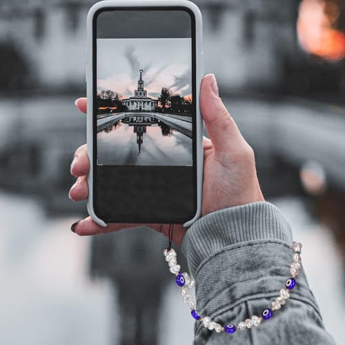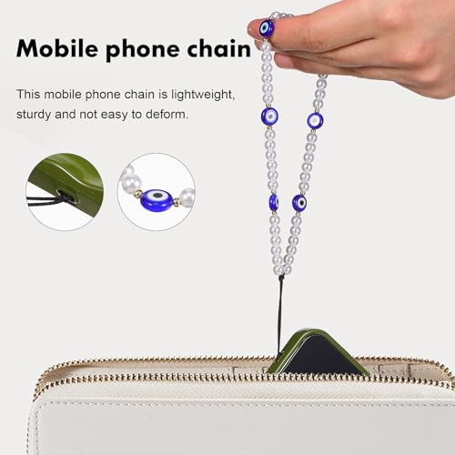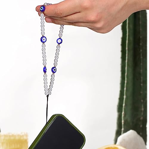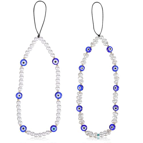 PartyKindom - بارتي كيندوم تعليقة موبايل بتصميم عين الحسد من اللؤلؤ، سلسلة مفاتيح للرجال والنساء والفتيات من قطعتين