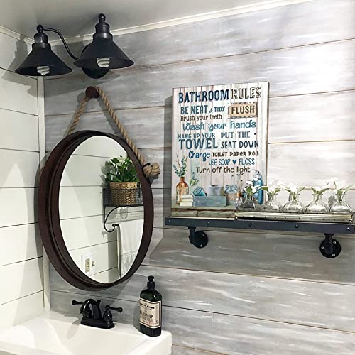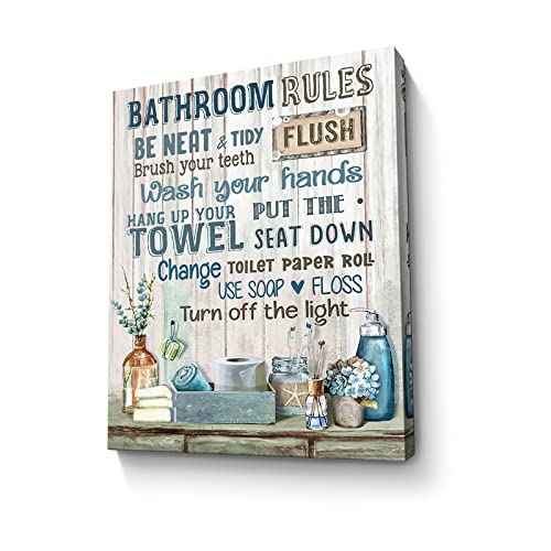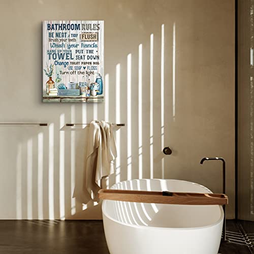 Parylore - Bathroom Decor Canvas Wall Art Rustic Bathroom Rules Sign Picture Blue Bathroom Wall Decor Painting Framed Modern Artwork for Bathroom Toilet LaundryRoom Decor 12x16 inch