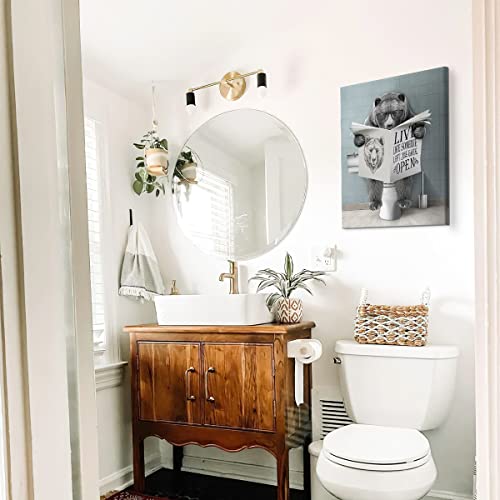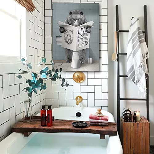 Parylore - Black Bear Bathroom Wall Art - Bear Sitting on Toilet Reading Newspaper Print - Funny Framed Modern Artwork for Bathroom Decor 12x16 inch