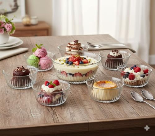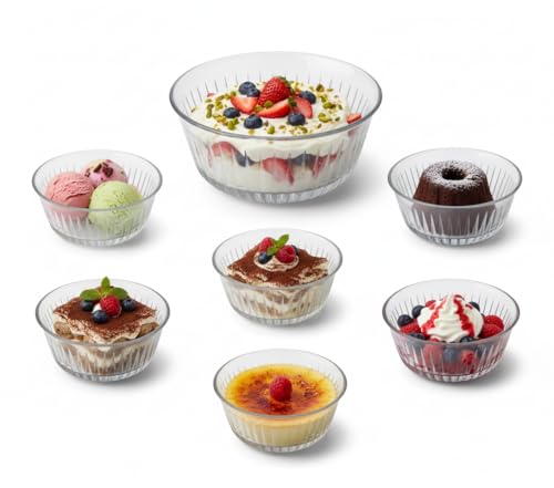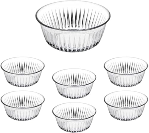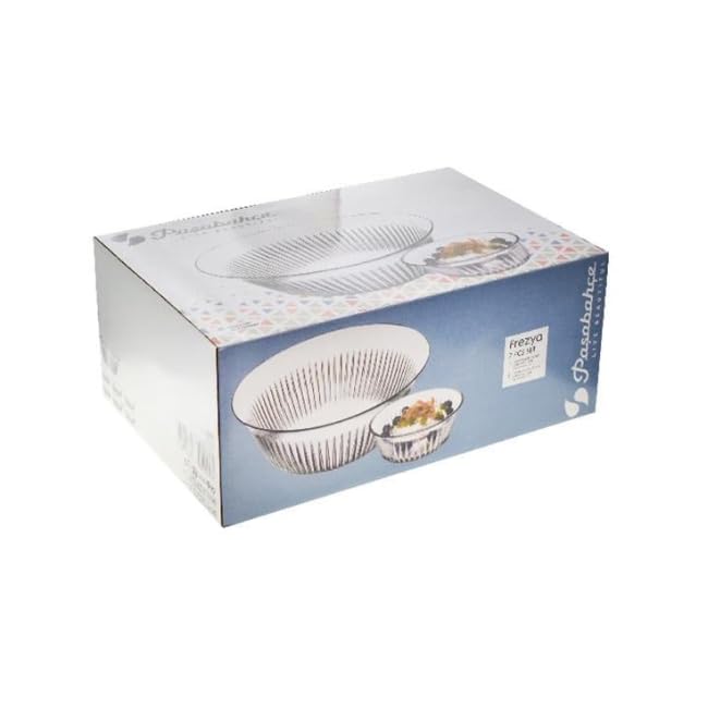 Pasabahce - Pasabahce Frezya Round Glass Dessert Bowl Set of 7Pcs 1 Large Bowl(2650ml-24cm)+6 Small Bowls(330ml-12.5cm) Turkey Made
