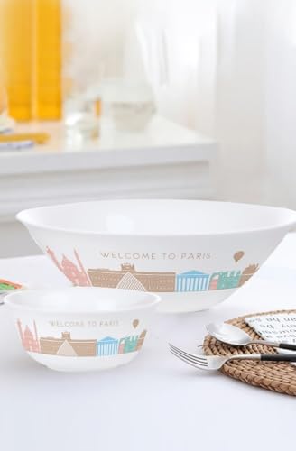 - COMPLETE SET: Beautiful 7-piece serving bowl collection featuring charming pastel beach house designs, perfect for casual dining and entertaining