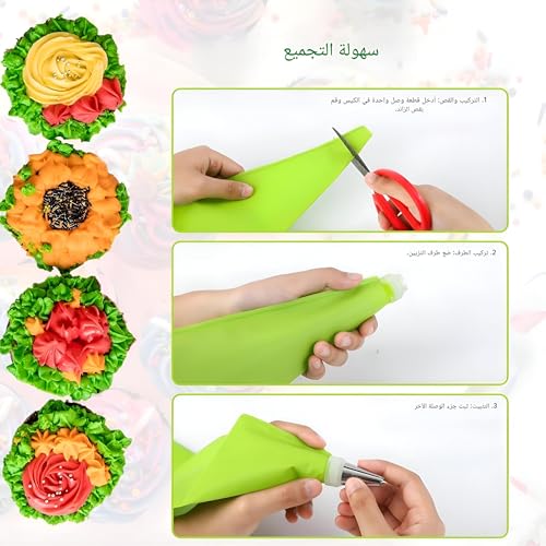 - تركيب أطراف وأكياس التزيين أمر سهل، ولا يتطلب سوى ثلاث خطوات بسيطة لإعداد سريع وسهل. هذا التصميم سهل الاستخدام مثالي لأولئك الذين قد يكونون جددًا في تزيين الكعك أو للخبازين المتمرسين الذين يبحثون عن الكفاءة.